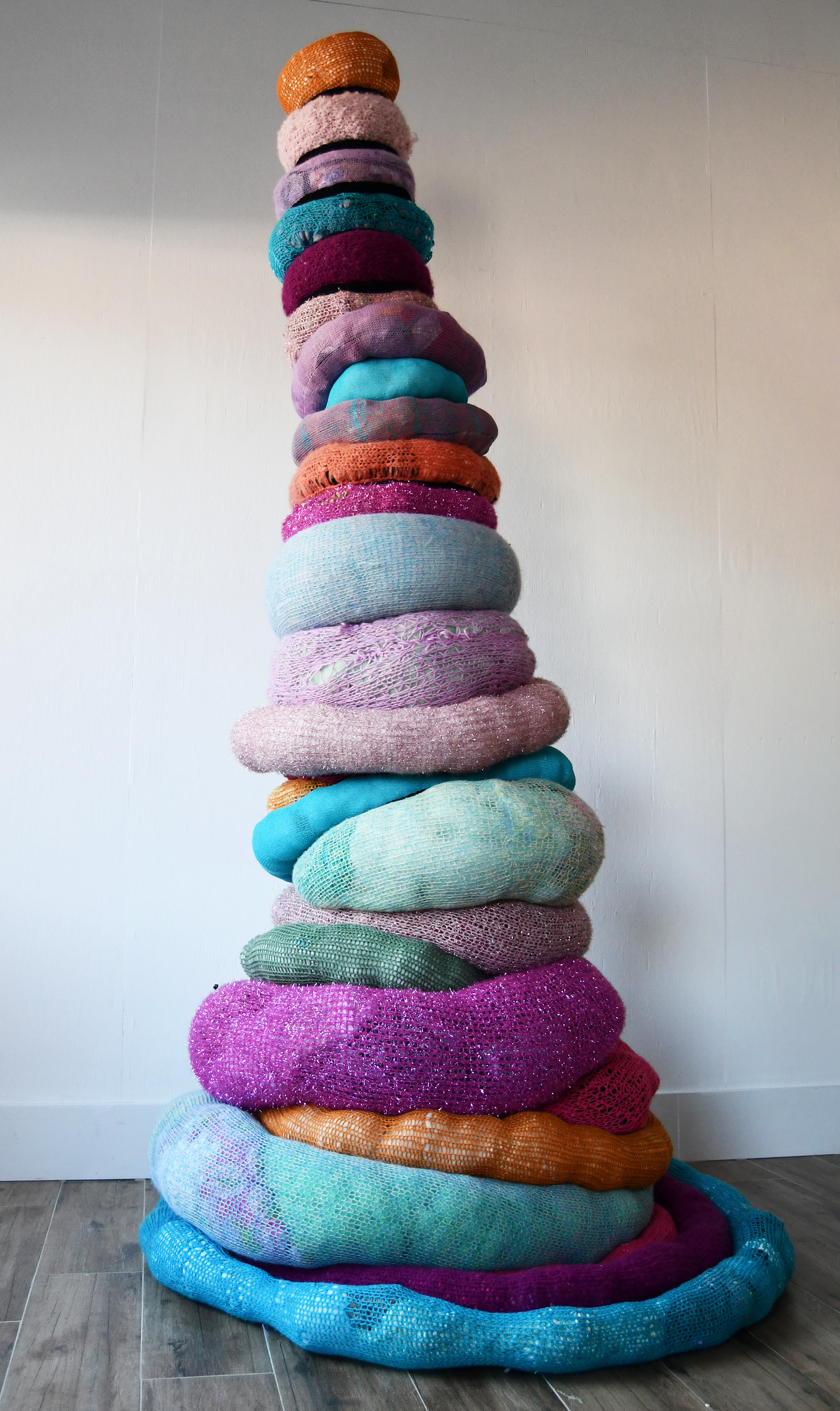 MACHINE-KNIT MOHAIR AND ACRYLIC YARNS, RECYCLED PLASTIC, AND TEXTILE WASTE